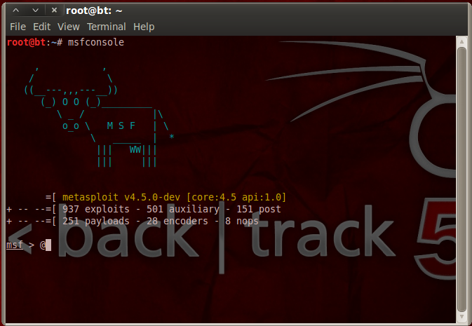 1. Mở Terminal trên máy BackTrack và gõ msfconsole